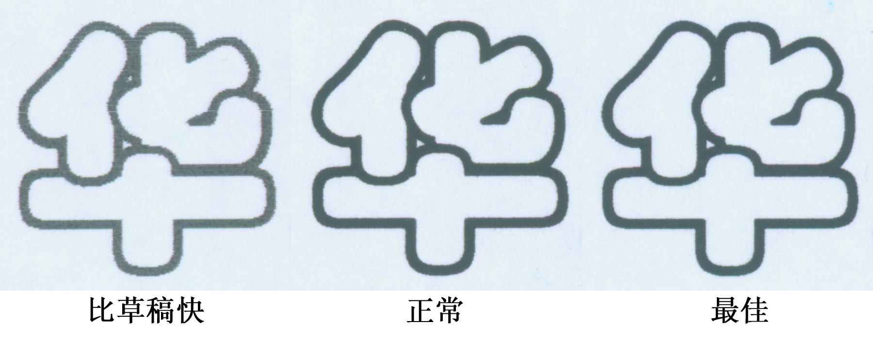 “比草稿快”的模式下,字迹比较浅,放大可以看出笔画中的填充不是很饱满,墨水使用量比较少,能够达到一定的省墨效果;“正常”模式比较大的提升了打印质量;同时,“正常”和“非常好的”两种模式对于文本输出的效果差距不大。“正常”模式在字体的边缘的毛刺控制能力更加出色一些,“非常好的”模式的文本输出表现最为优异。