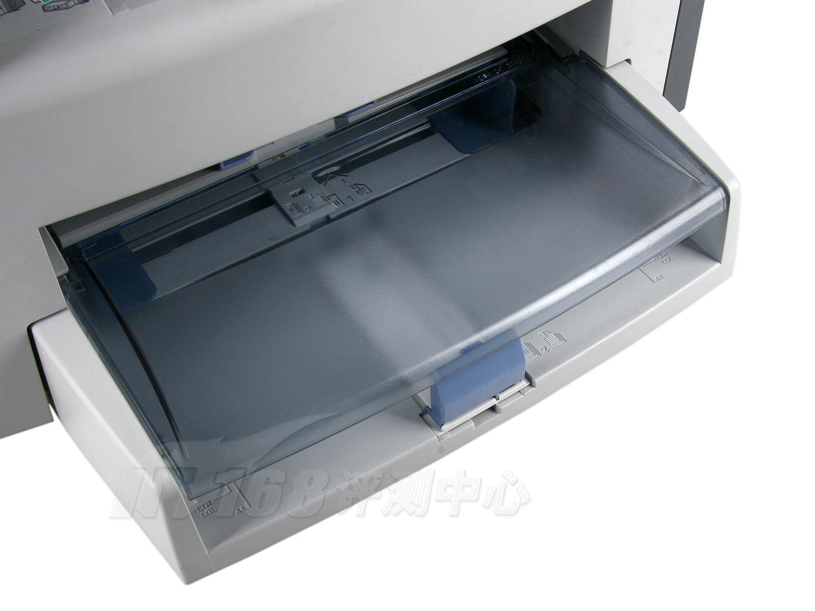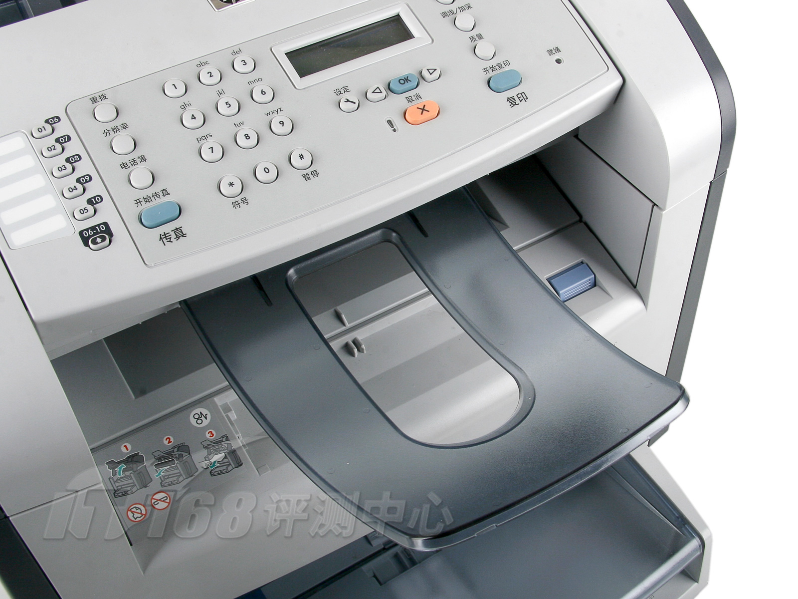 M1319f的操控面板位于机身顶部,角度略微倾斜;按键间距适当,并配有对应的中文标识;双行16字符液晶屏可以及时显示用户所需的信息,便于查看操作。M1319f的打印单元采用U型走纸方式,进出纸托盘都位于机身正面偏下的位置,支持2级延伸。进纸盒容量为250页普通纸,配有防尘挡板。出纸托盘可支持100页普通纸。在出纸单元的右侧有个天蓝色按钮,只需轻轻按下,一体机的顶部就会自动升起固定,露出硒鼓仓部分,用户可以轻松更换耗材。