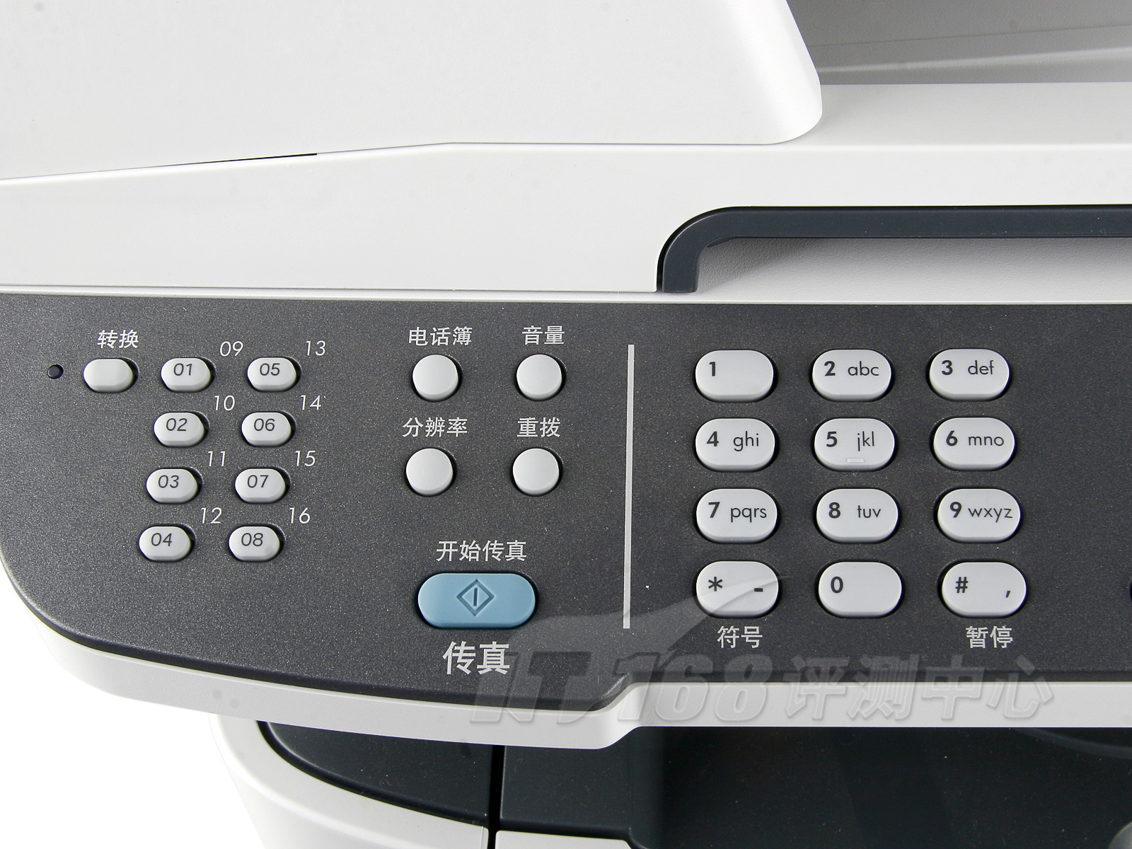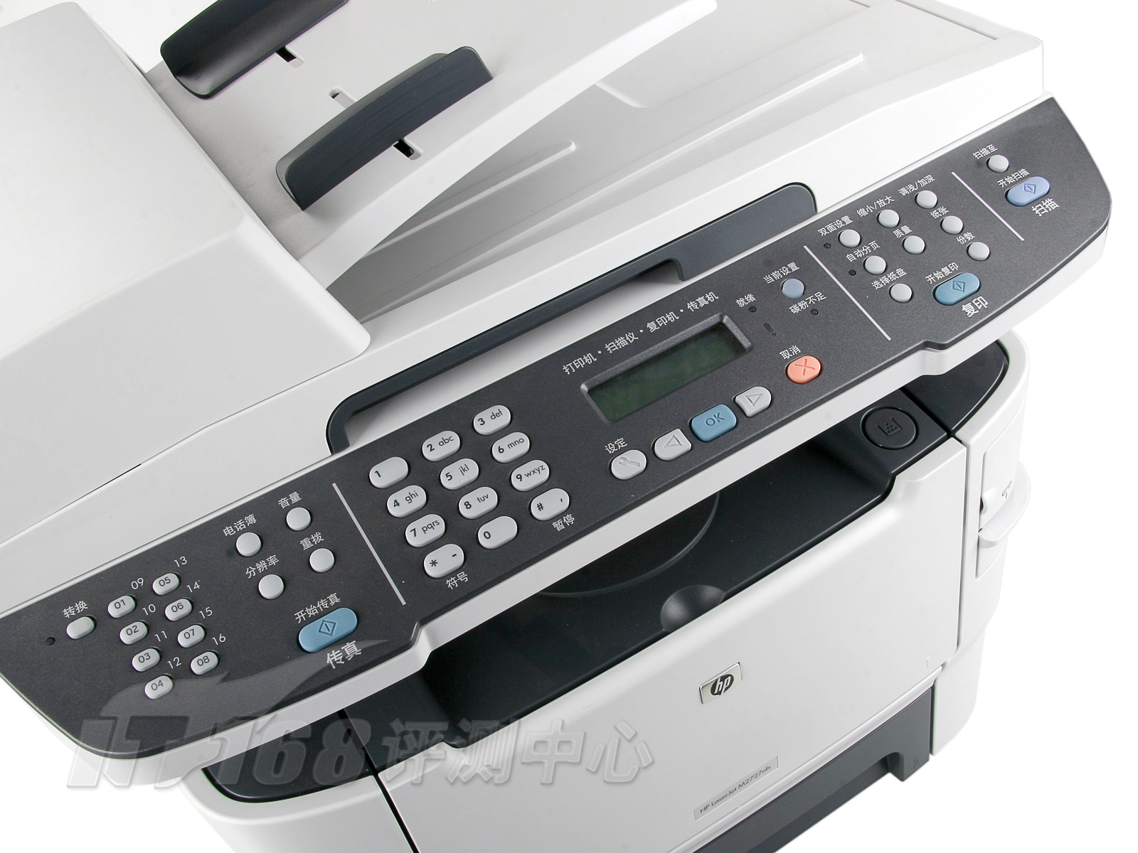 惠普M2727nfs的控制面板分为液晶屏区、传真控制区和综合控制区三个区域,和M1522系列不同的是,液晶屏虽然也不大并且只能容纳2行字符,但是却支持中文显示。中文的液晶显示屏很重要,尤其是复印和传真功能的选择,我认为,这已经成为考量多功能一体机一个重要的指标。同时,在控制面板上设计有指示灯,对于某些比较重要并且常用的功能采取指示灯的方式,比如双面打印或者自动分页,避免用户由于误操作造成的纸张浪费。