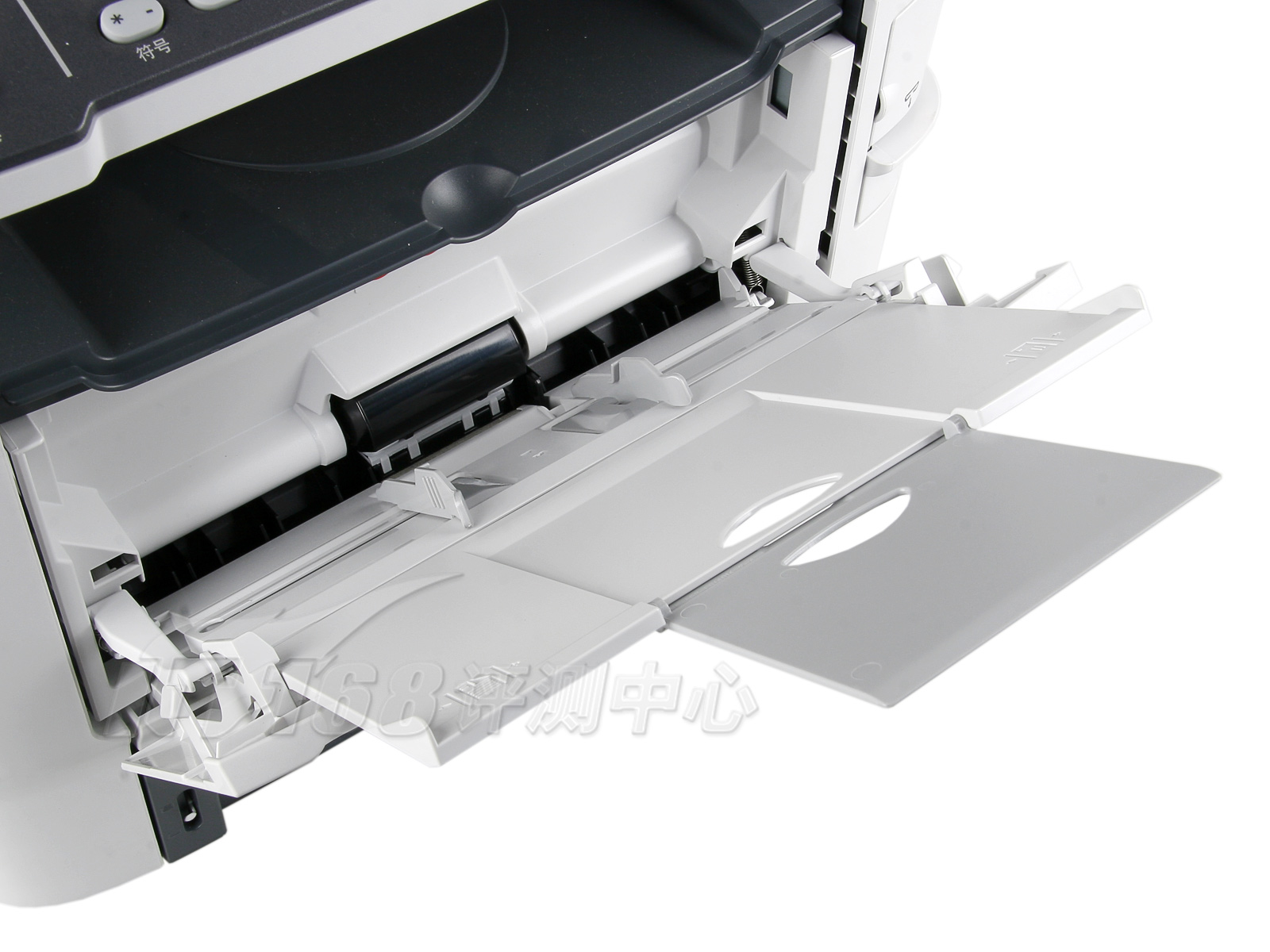 前面提到,惠普M2727nfs采用封闭式的自动进纸盒,经过纸盒扩展后容量达到500页,同时自动进纸盒可以抽出机体独立操作。进纸盒的左下角设计有纸张剩余量计量装置,可以不打开纸盒就可以观察到纸张的状况。M2727nfs提供一个前置的多功能进纸器,可以处理一些特殊类型的纸张比如信封。由于在扫描单元两侧有支架,使得出纸仓的空间很充裕。