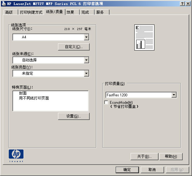 我们对惠普M2727nfs进行单页文本、50份文本、5页EXCEL、5页IE、10页PDF、单页图文混排和单页图像进行速度测试,从预热时间、首页输出时间、连续输出速度、大容量文件、图文混排和图像输出等多方面综合M2727nfs在速度方面的性能表现。在打印质量选择方面,M2727nfs提供了FastRes1200和600dpi两种打印精度选择,同时提供省墨模式。在测试过程中,我们选取默认模式FastRes1200作为输出方式。