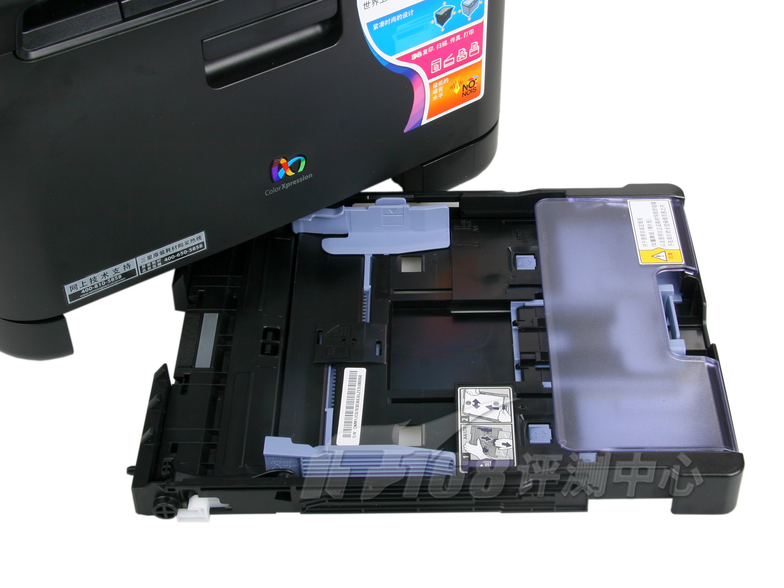CLX-3175FN是三星最新推出的一款彩色激光一体机,具有打印、扫描、复印、传真等功能,尺寸超小,噪音控制较好。抽屉式自动进纸盒位于机身底部,由于压缩机身尺寸的关系,进纸盒略突出于机身表面,容量为150页普通纸,可以从机身取出操作,比较方便。由于采用四次成像技术,因此彩色输出速度略低。