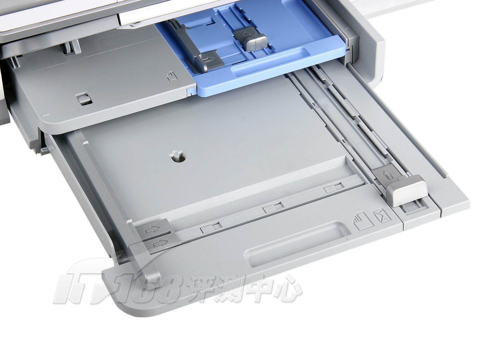 C7288的进纸单元分为主纸盒和照片纸和两部分,主纸盒用于装载A4幅面纸张以及如信封等不规则介质,照片纸盒用于承载4x6"照片纸,可同时载入100页普通纸和20页4X6"照片纸;出纸托盘支持3级延伸,末端向上突起,可以有效承载介质并防止介质滑落。MP638顶部自动进纸器采用双向移动的卡夹固定纸张,这比单向固定更加有效,也更容易控制纸张的位置,底部进纸盒容量150页;出纸托盘支持2级延伸,呈30度向上倾斜,有效避免介质滑落。两款机型都可以实现多种介质同时输入,有效减少更换介质操作,提高工作效率,封闭式的进纸盒可以避免灰尘侵袭,减少对一体机内部的损伤。