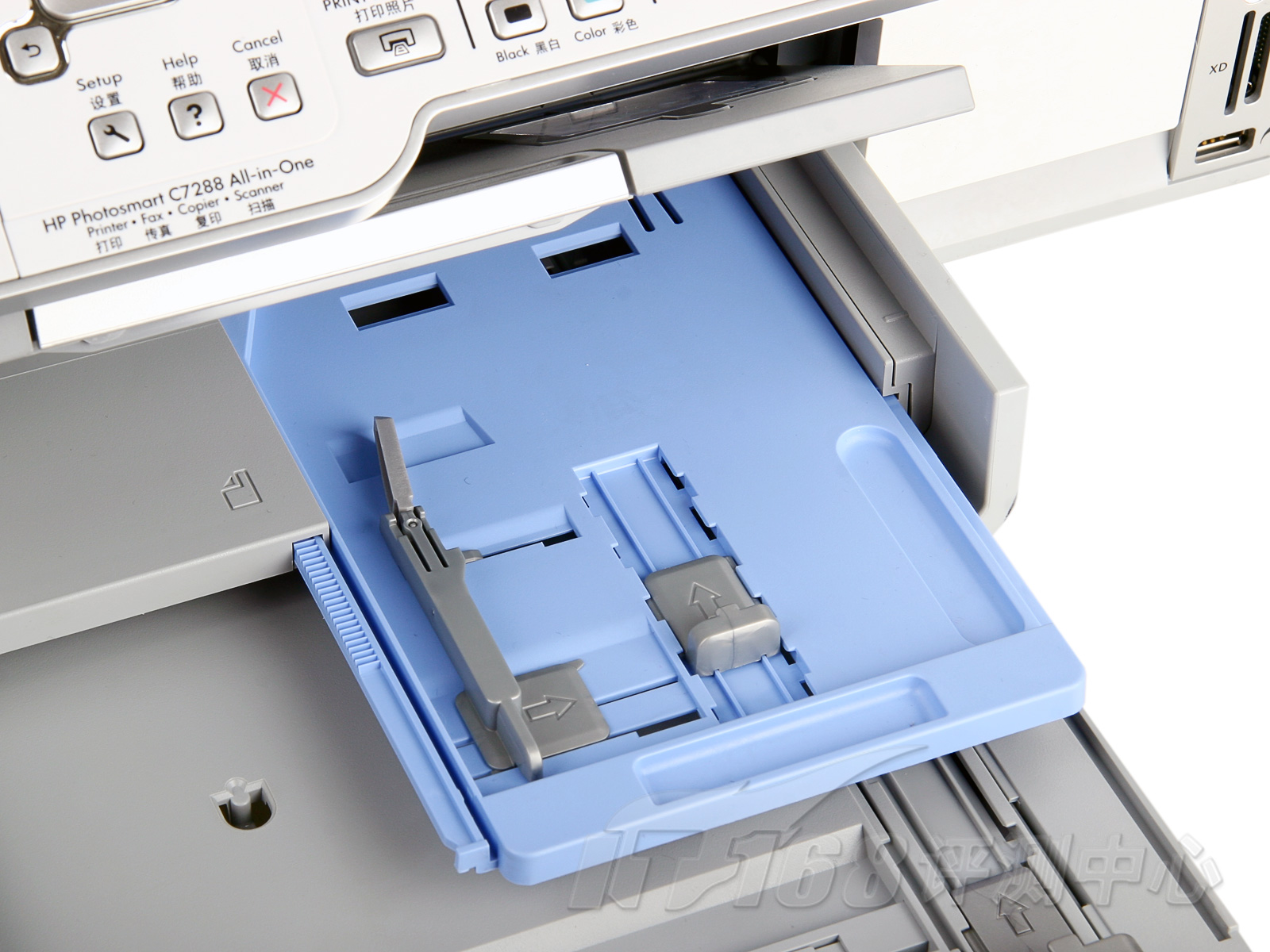 传真一体机的走纸具有很大的局限性,一般来说只能采用U型走纸方式,对于这点,惠普C7288显然是如鱼得水,游刃有余。由于没有传真组件,因此MP638仍然保留了后部进纸的L型走纸方式,在此基础上,MP638还增加了底部自动进纸盒,实现U型和L型两种走纸方式,使用更灵活,用户可以根据需要选择进纸位置,顶部进纸器更加容易上纸,而底部进纸盒则有效的避免灰尘侵袭。
