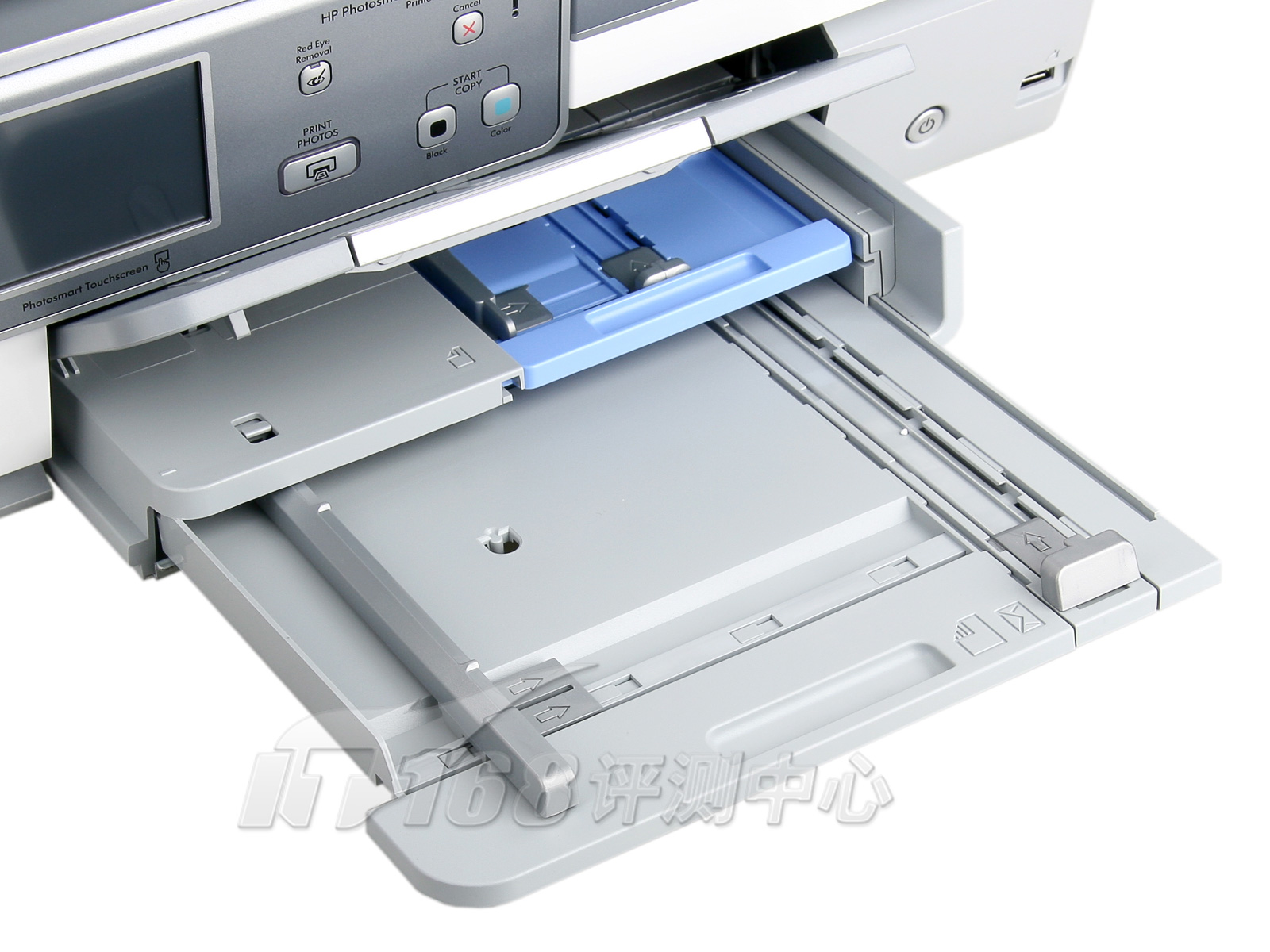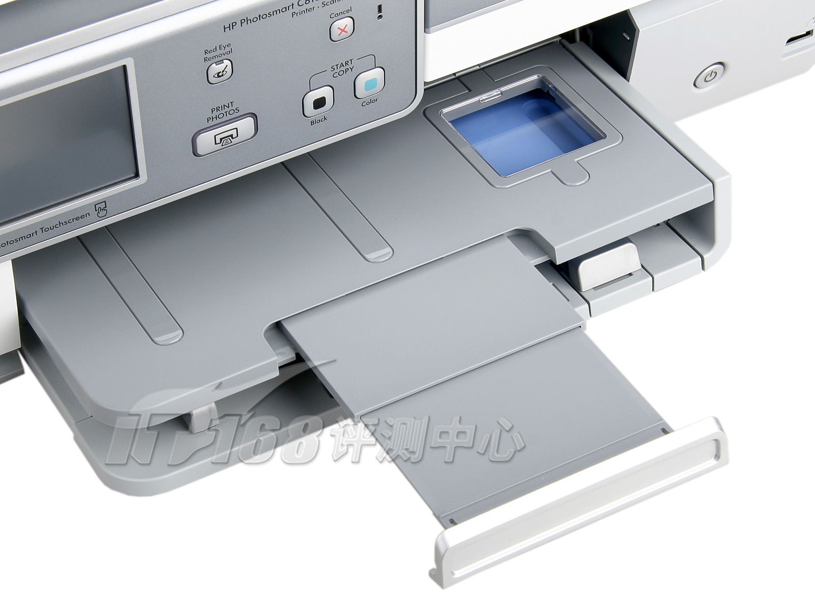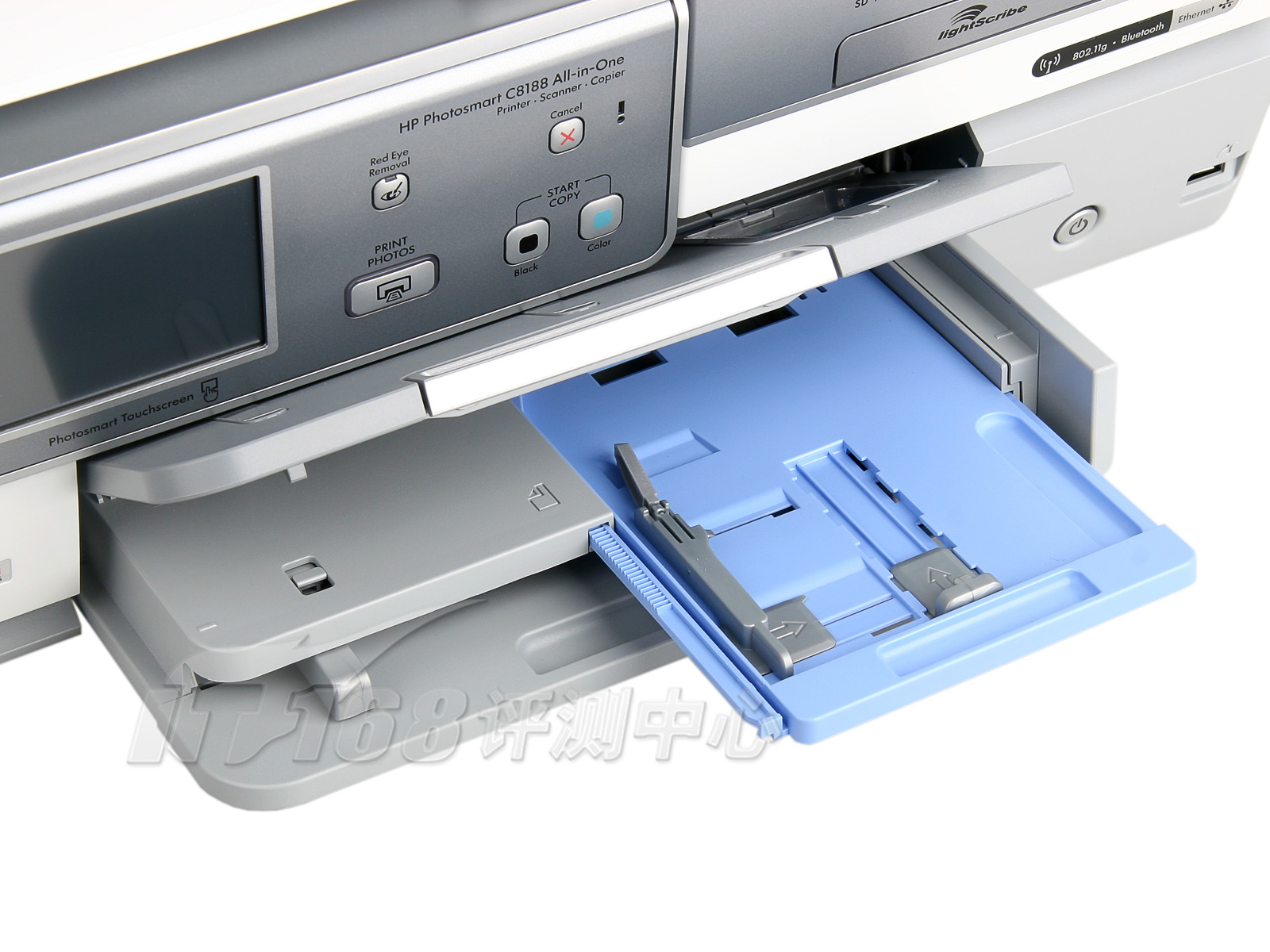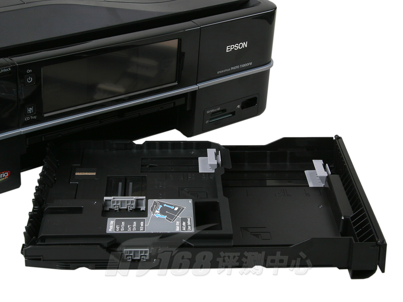 惠普C8188的进纸盒采用惠普一贯的双层设计,下层装载A4幅面普通纸,上层是一个独立的4x6"照片纸进纸盒,在出纸托盘上有透明的窗口,可以直观的查看照片纸余量。TX800FW采用抽屉式自动进纸盒设计,平时完全闭合于机身底部,在更换介质时可以将纸盒从机身完全拉出,纸盒也分为普通纸盒和照片纸盒两层,可承载A4幅面普通纸以及5x7" ,4x6",3.5x5"等多种尺寸照片纸,适用范围更广泛,然而由于工作状态下纸盒整体没入机身,在外部无法直观的查看介质余量。事实上,我们任务爱普生并没有为这种进纸方式做好准备,在测试的过程中,会出现进纸时同时卷入两张纸的情况,而如果把一张照片纸和一张普通纸同时放进进纸盒,一下卷起两张纸的几率高达50%以上。