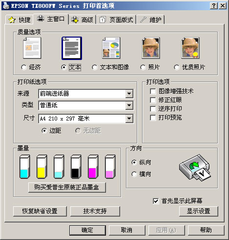我们对两款机型进行单页文本、10份文本、2页EXCEL、5页IE、10页PDF、单页图文混排和单页图像进行速度测试,从预热时间、首页输出时间、连续输出速度、大容量文件、图文混排和图像输出等多方面综合两款机型在速度方面的性能表现。惠普C8188提供比草稿快、比正常快、正常、非常好的、最大dpi五种打印模式,爱普生TX800FW经济、文本、文本和图像、照片、优质照片五种打印模式,在测试中,我们根据不同的测试项目来选择打印模式。