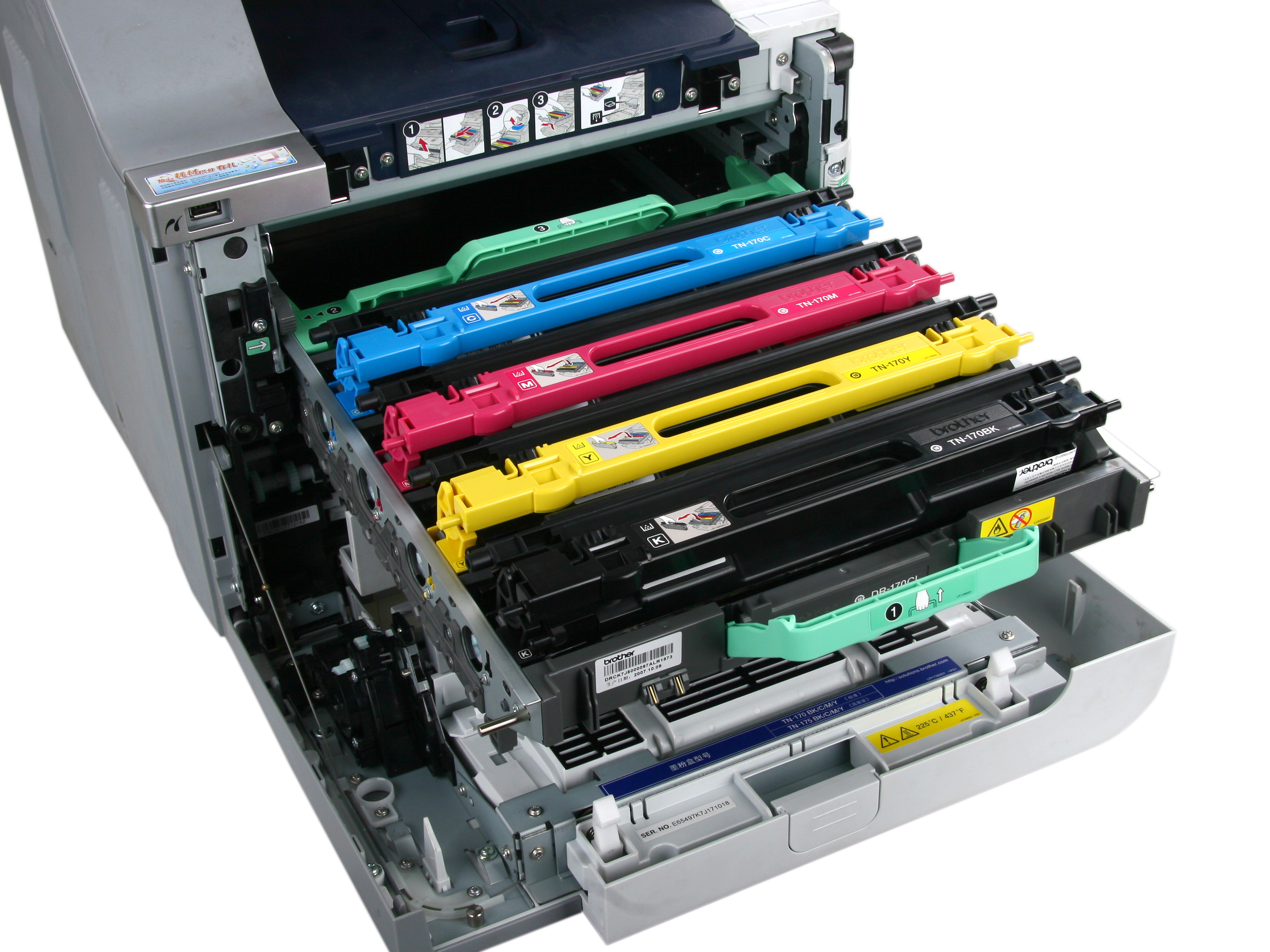 耗材方面上看,两款产品都采用水平一次成像设计,同时也都是感光鼓和碳粉盒分离的技术,随机碳粉盒和实收碳粉盒相同,容量都是黑色2500页/彩色1500页。