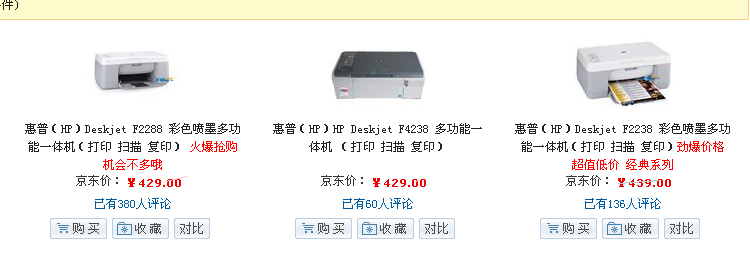 在6款产品中,惠普就占了3款,包括Deckjet系列F4238,F2288和F2238,价格相差不大,性能也非常接近,外形上看,都属于典型的惠普式设计,白色和灰色的搭配以及U型走纸方式,给惠普的老客户带来非常熟悉的感觉。仔细查看性能,除了F4238将月打印负荷提升到了3000页以外,其他参数都基本一致,几乎可以说是换个包装就当新品重新卖,这也是惠普吸引用户关注的一个方式。