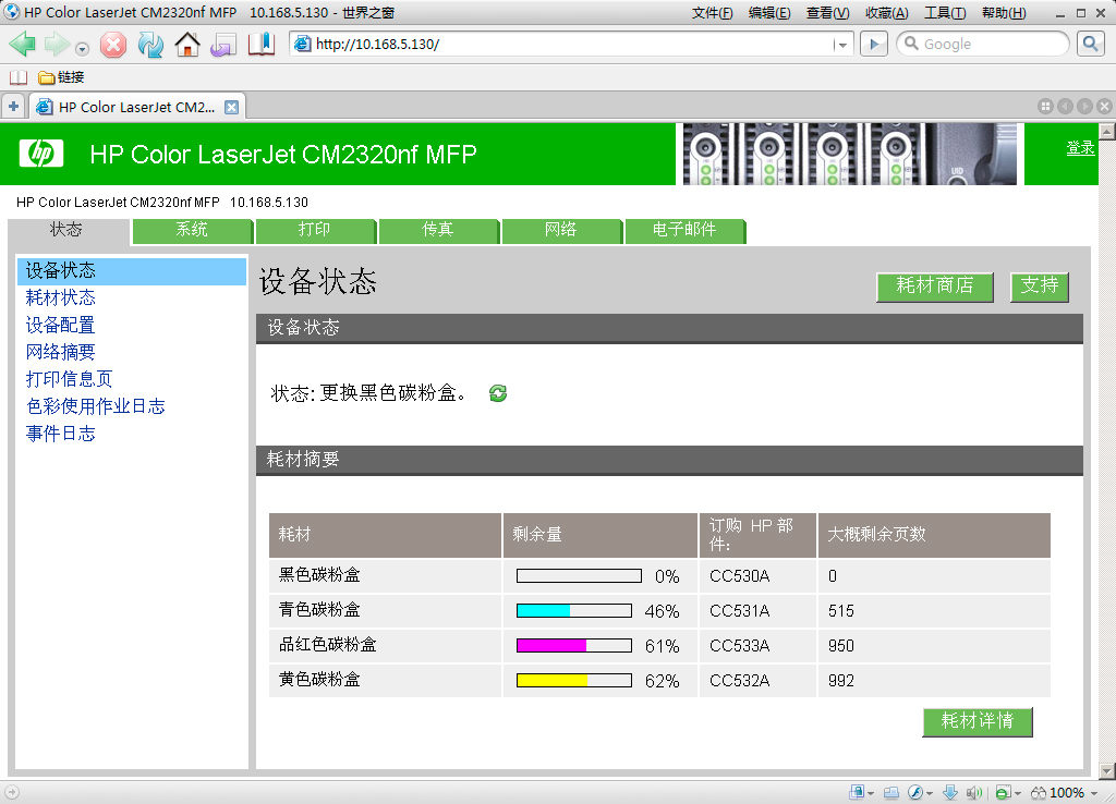 一般来说,绝大部分的品牌在设计生产网络打印机特别中高端机型的时候,都在配套完善的软件系统。在这些软件中,基于IE的网络打印服务软件是操作最简便、功能最强大的。由于网络打印机都是作为独立的设备出现在居于网络环境之中,所以每台打印机也可以看做是一台PC终端,用户或者管理员在使用或者维护打印机时可以直接通过打印机的地址调用打印设置和维护功能。