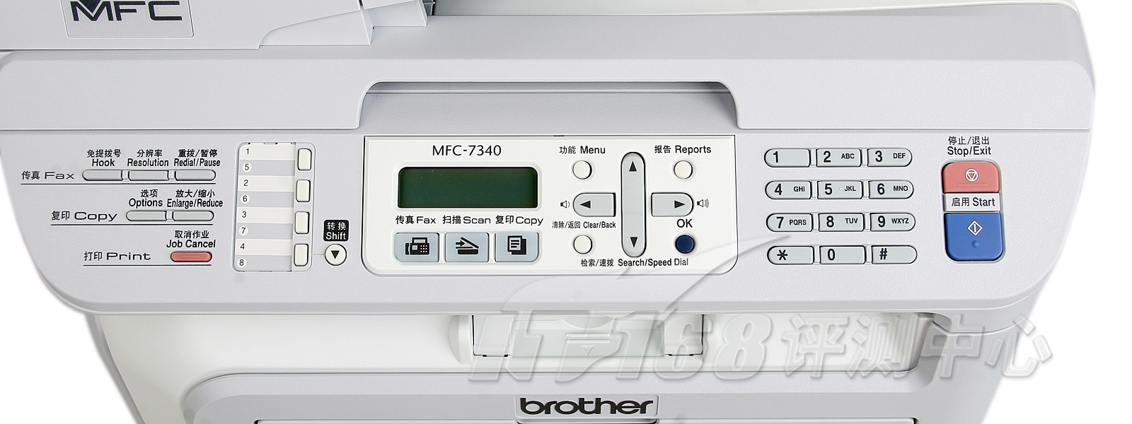 【IT168评测中心】2008年10月,兄弟发布了3款多功能黑白激光一体机产品,包括MFC-7340、MFC-7450、MFC-7840N,从命名方式上看,三款机型都是带有传真模块和ADF单元,MFC-7840则带有网络打印单元。MFC-7450是定位于最低端商务应用的黑白激光一体机,标称22ppm的打印和复印速度,使用基于主机的GDI打印语言,物理分辨率600dpi。这款一体机以3299元的价格上市,上市一年之后,价格出现大幅下跌,目前最低售价已经接近2300元。