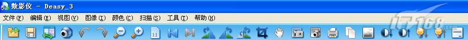 数影仪全能通X500的软件界面分为三个大的区域,在最上面是菜单区和工具栏,左下方是图片浏览区,右下方是扫描窗口。工具栏集中了软件的各项操作键,菜单栏中的很多操作都可以在下面的快捷工具栏中找到: