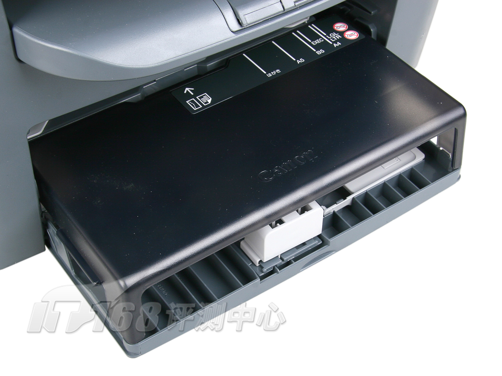 两款机型都采用底部进纸、中部出纸、顶部扫描的走纸方式。佳能MF4322d的进纸单元主要以一个自动进纸器和一个多功能进纸单元构成,自动进纸盒采用半封闭设计,不用的时候可以折叠起来以节省空间。另一方面,顶盖上面有幅面刻度并配有夹纸器,它成为一个单页的进纸器可以用于处理信纸、信封等比较特殊的介质。出纸单元在机身中部,可以容纳100张纸张,但是托盘稍显脆弱。惠普M1120的出纸单元设计设计成可拆卸的塑料托盘,对于这个设计让人很难理解,毕竟一体机日常办公以打印和复印为主,出纸托盘几乎是必不可少的部分。 两款机型都采用鼓粉一体式耗材设计,每次更换粉盒时连同硒鼓一起更换,即使是不熟悉的用户也可以很轻松的进行操作。