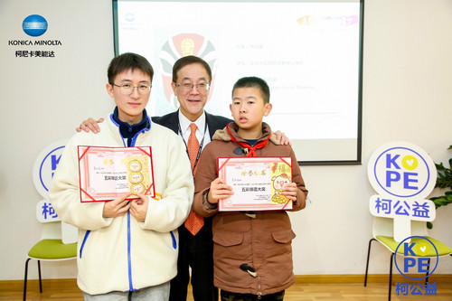 12月17日,由柯尼卡美能达办公系统(中国)有限公司董事长炭谷忠彦先生、柯尼卡美能达(中国)投资有限公司总经理大屋裕之先生、柯尼卡美能达办公系统(中国)有限公司市场部部长凌芸女士、柯尼卡美能达医疗印刷器材(上海)有限公司副总经理小岛茂之先生和市场部部长佐藤朋秀先生等人组成的评审团,在终审现场对入围作品进行了仔细观摩和综合评分。最终,上海市徐汇区董李凤美康健学校的龚琦峻同学和北京市东城区培智中心学校的贾淑媛同学荣获“五彩非遗大奖”。