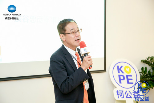 炭谷忠彦董事长在现场用中文发表了精彩的致辞,他表示:“今年的特殊儿童关爱活动创新性地与非物质文化遗产的主题相结合,一方面旨在培养孩子们的审美能力和创造力,另一方面也有助于推动中国非物质文化遗产的传承!未来,柯尼卡美能达将持续关注特殊儿童并积极承担企业社会责任。”