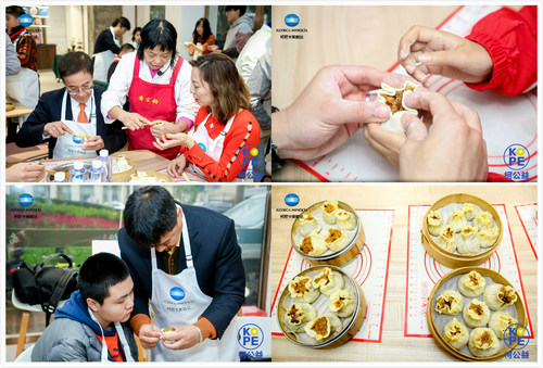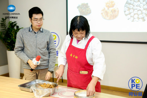 艺术作品创作之外,柯尼卡美能达为了让小朋友们加深对传统文化的理解,还精心准备了趣味无限的烧麦制作环节。在上海站嘉年华现场,糕点技艺第三代传承人袁金娣老师(以下简称“袁老师”)受邀出席,亲切地为大家讲解演示包烧麦的方式,并指导孩子与志愿者们一起制作。在柯尼卡美能达志愿者与孩子们互动过程中,欢声笑语接连不断,而一张张烧麦皮也将肉馅、快乐与爱一同包裹起来,藏在每个人的心底。