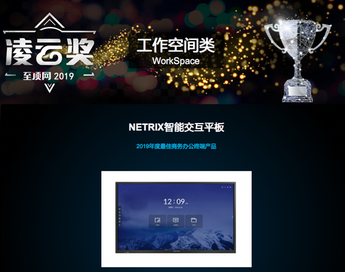 【IT168 资讯】近日,NETRIX智能交互平板捷报频传,先后斩获2019年度IT168技术卓越奖办公投影类“非常好的创新产品奖”和至顶传媒2019年度凌云奖工作空间类“非常好的商务办公终端产品”两项大奖。这两大媒体年终评奖一直被认为是当年技术和产品创新的风向标,也是用户采购企业级IT产品和服务的重要参考。NETRIX首年上市就斩获业界两项重量级大奖,充分体现了业界对其的认可和肯定。
