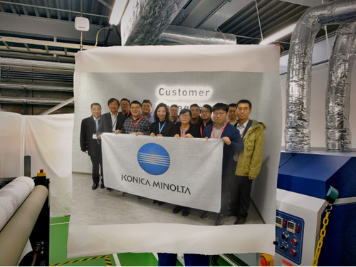 此外,笔者一行还看到了柯尼卡美能达喷墨印花设备Nassenger 10以及Nassenger SP-1。尤其是现场展示环节,Nassenger SP-1以高超的打印速度和打印质量,给在场嘉宾留下的深刻的印象。作为本次参观的最后一个环节,柯尼卡美能达日方工作人员还利用喷墨印花设备Nassenger 10,现场输出了大家在CEC的合影照片,也让笔者一行充分领略到了该系统的高速输出能力和色彩表现力。据日方工作人员介绍,目前中国深圳某客户已经引进了亚洲首台Nassenger SP-1机器,未来中国喷墨印花市场表现,值得期待!