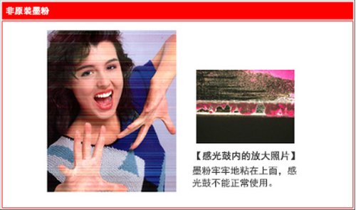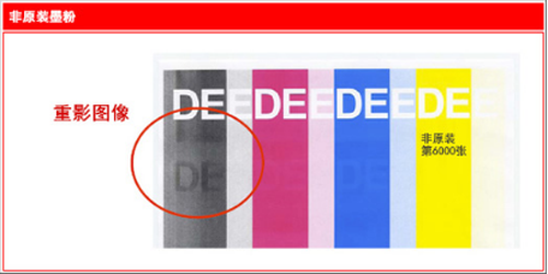 使用原装墨粉打印出的内容页面干净、图像清晰。使用非原装时,整个页面上都可能出现重影现象。打印状态这么差,工作状态怎么好?