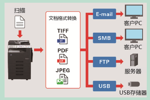第三,针对中小型办公环境内的数字信息共享,该机提供了灵活的彩色扫描功能,用户不仅可以高效地将纸质文件转化成多种格式,还可以同时发送到多个设备和地址上,在方便纸质文件数字化储存的同时,加强企业内部信息的运转效率,从而切实有效地提高办公效率。