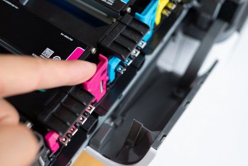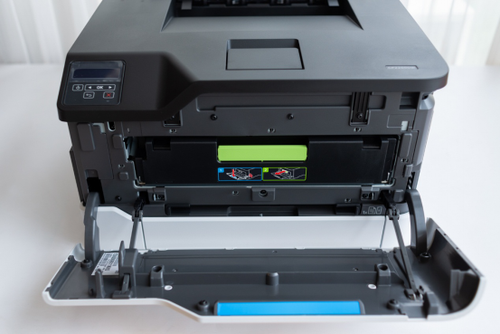 耗材部分,该机配置了四色独立式硒鼓,采用水平抽屉式设计,用户按照说明指示,拉出抽屉就可以完成耗材更换工作。