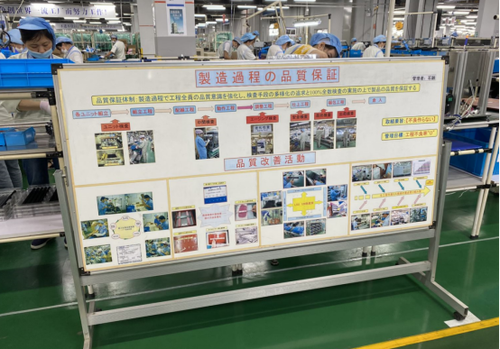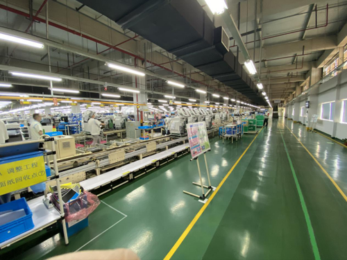 除了非常稳定的人员保障之外,生产车间的高标准化管理也是成就高质量产品的重要因素之一。小编穿戴好帽子和鞋套,听取了必要的安全须知后,随着管理人员走进了夏普复合机的生产车间。