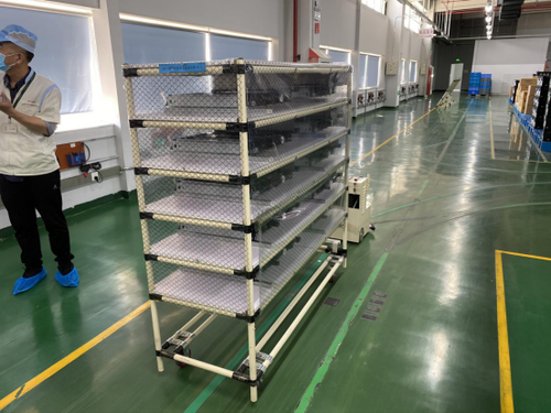 当然,除了传统的人力装配之外,夏普复合机生产线也在不断创新优化装配过程,很多简单重复的操作步骤,也开始使用机器人进行替代。比如,穿梭在整个车间运送零配件物料的机器人,就可以十分精准高效地完成配送任务,而据工厂负责人介绍,整套传输系统可以精简五个人力,在提升传送效率的同时,也减少了人力成本的之处,为工厂创造了更大的价值。