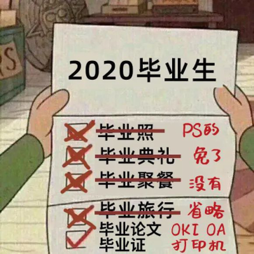 玩笑话的背后是毕业生们大学时光的遗憾:没有举行的拨穗仪式,没有拍摄的毕业照、没有举行的毕业典礼、没有举办的毕业聚餐......