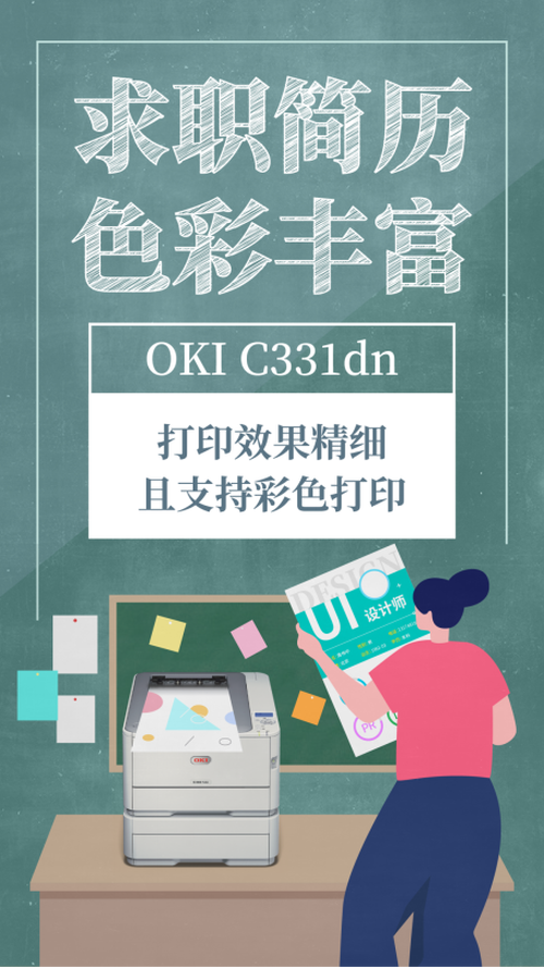 OKI C331dn的超细高清墨粉保障文档高精细输出,同时走纸路线顺畅,保证纸张输出稳定,让毕业生们无忧打印求职简历和精美作品集。