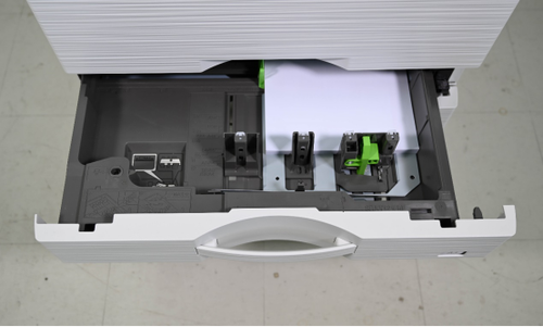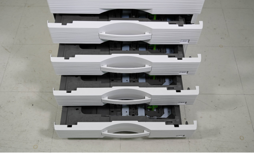 在纸张处理方面,MX-C4082R配置了侧面的手动进纸器及下方的四层纸盒,根据官方资料显示,该机可以实现最大2200页的装纸量,配合手动进纸器可以处理更多范围的各型号纸张,满足企业用户对于特殊纸张、大批量输出的全部需求。综合来说,该机拥有强大的纸张装配及处理能力,可以满足一般企业的日常文印输出需求,即使是大印量的标书打印,也可以轻松胜任。