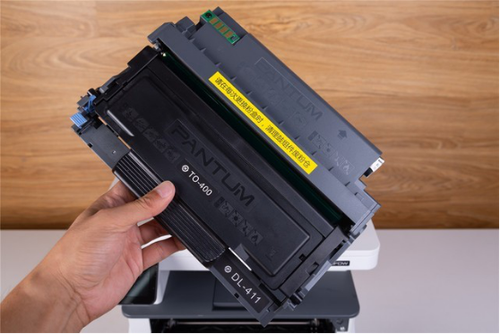 在激光打印领域,成像鼓的寿命往往远大于墨粉的容量, 采用鼓粉分离式的耗材,墨粉盒与成像鼓均可单独替换,确实是物尽其用,更贴合可持续的理念。奔图M7300FDW采用的就是鼓粉分离式耗材。