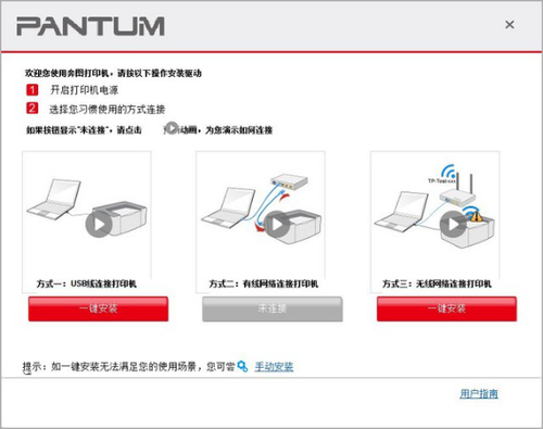 点击需要的连接方式下方的“一键安装”,等待片刻,驱动自动安装完毕,立刻就能开始使用,不再需要繁冗的步骤或复杂的配置。