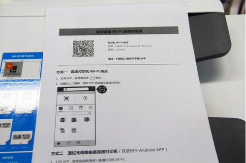 在奔图M7300FDW的无线网络状态界面中点击“打印二维码”,自动打印出带二维码的连接向导。用奔图打印APP扫一扫,等待片刻手机与打印机自动连接,并且接入到了无线办公局域网之中。