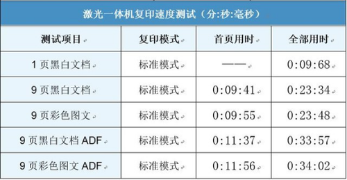 复印速度有类似的表现。多页文件使用ADF输稿器连续复印会有所降速,是因为ADF走纸以及与复印动作的配合,换来多页文件复印的便捷省力。