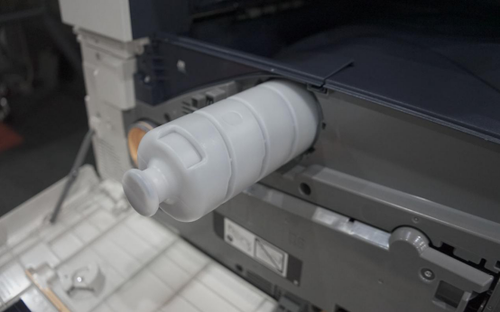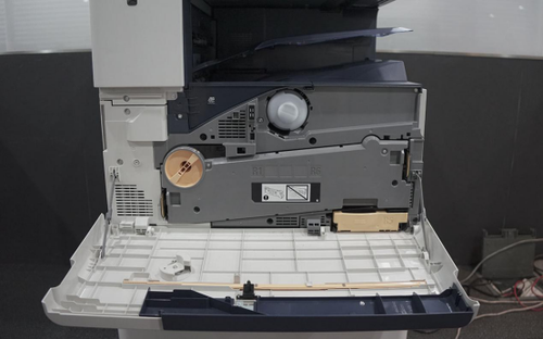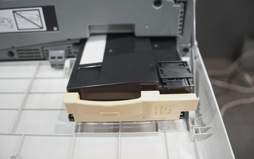 打开机器前,印有富士施乐logo的挡板,我们就可以看到该机的耗材舱,更换墨粉盒、硒鼓及废粉盒都十分便利。值得一提的是,该墨粉采用了富士施乐全新开发的超环保EA墨粉,可实现1200x2400dpi的分辨率。据了解,新开发的EA墨粉,颗粒直径较小,可实现更为干净利落的文本和线条输出效果,可完美还原半色调、婴儿肌肤、天空等细腻的输出,后面的打印测试,我们可以感受一下。