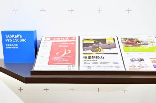 TASKalfa Pro 15000c是京瓷的第一台喷墨数码印刷产品,但同时他们也在计划今后的数码印刷设备产品线扩充,因为十分看重中国市场,所以希望能够推出更适应中国市场的产品,增加可打印中国红的双色机,适用铜版纸的喷墨机型以及连续纸机型等。