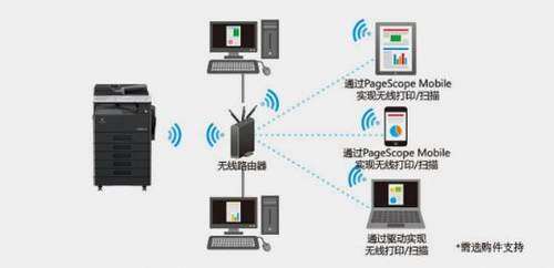 智能配置方面,该机支持诸多智能便捷的功能设置。如,PageScope Mobile 应用,用户利用该软件,可以实现智能手机及平板设备之间的稳定链接,亦可在局域网环境下,利用移动设备打印文档和图片,以及获取扫描数据。
