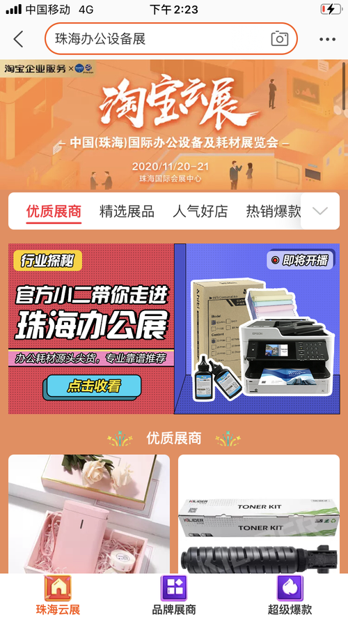 针对国内市场,再生时代与淘宝达成战略合作,联合推出“珠海办公设备展x淘宝云展”。淘宝作为国内首屈一指的综合电商平台,拥有超过3000万小B企业用户,涵盖全国80%的中小企业用户。再生时代联合淘宝为线上卖家及线下厂商搭建一条沟通的桥梁,大数据精准助力展商匹配买家。本届“珠海办公设备展x淘宝云展”线上页面曝光量预计超过一亿人次。