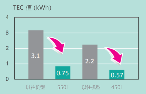 bizhub 550i系列的TEC值较前代机型显著下降