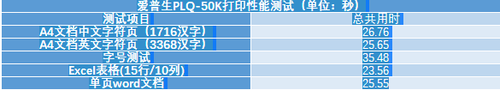 爱普生PLQ-50K打印性能测试(单位:秒)