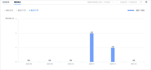 系统内多维度的印章使用和管理数据都可以通过报表的方式进行展示,进行统计分析。