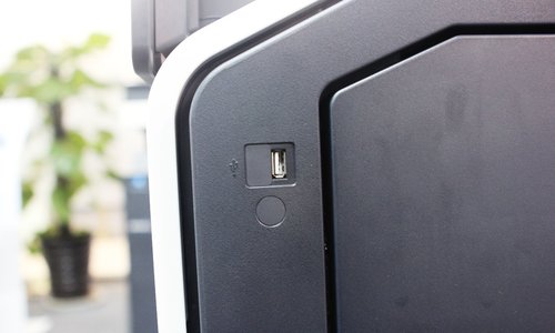 第三,在机身一侧,该机设计了前置USB接口,用户可以将在不需要电脑的情况下,就可以使用移动硬盘来完成文件的打印、扫描保存操作,不要更方便。