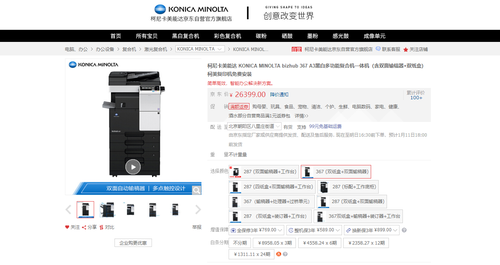 【IT168 行情】对于中小企业用户来说,一台高效的办公利器,可以优化办公流程的同时,提升企业的办公效率。而来自柯尼卡美能达的bizhub 367,就配置了丰富的功能应用,满足中小企业的办公应用,没有任何问题。目前,该机正在京东商城促销,感兴趣的朋友请不要错过。