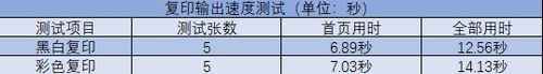 综合上面的成绩可以看到,ineo+ 450i的输出表现相当不错,首页打印时间维持在9秒上下,连续输出性能表现更佳,这样的输出水平可以轻松胜任企业用户的高印量需求。而在复印方面,该机的复印首页输出时间在7秒上下,整体用时黑白和彩色并无差异,如果利用双面输稿器则可以获得更快的处理时间,可以实现较高效率的纸质文档处理能力。