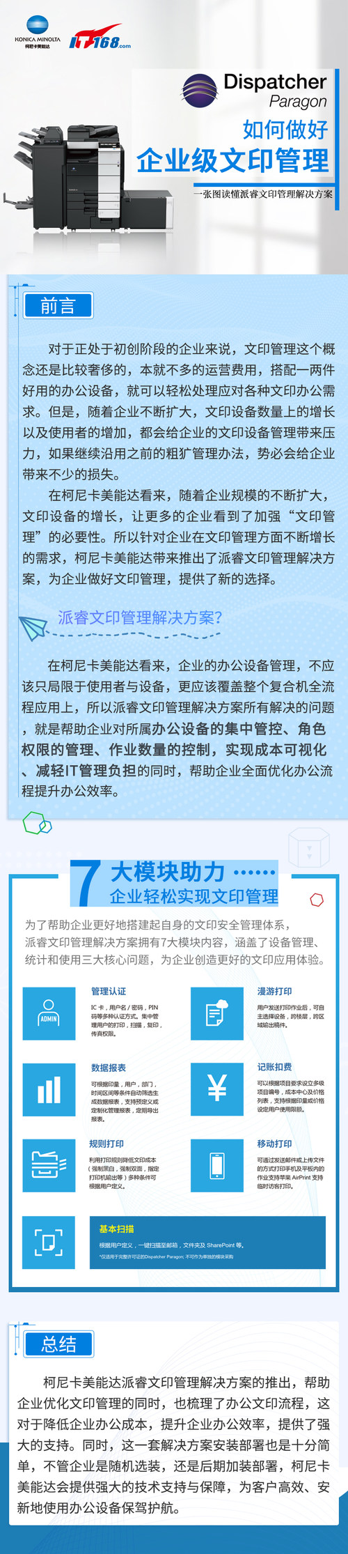 而在柯尼卡美能达看来,企业规模的壮大,文印设备的增长,会让更多的企业看到加强“文印管理”的必要性。所以针对企业在文印管理方面不断增长的需求,柯尼卡美能达推出了派睿文印管理解决方案,为企业实现更好的文印设备管理,提供了可能。那么今天,我们就用一张图读懂的形式,为大家简要介绍派睿文印管理的精髓,希望能够帮助到各位。