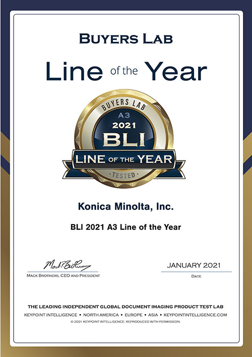 柯尼卡美能达斩获Keypoint Intelligence BLI“2021年度A3杰出全系列产品”奖