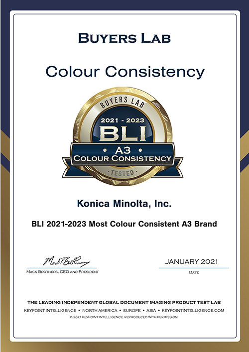 柯尼卡美能达斩获Keypoint Intelligence BLI“2021-2023年度色彩一致性杰出A3品牌”奖