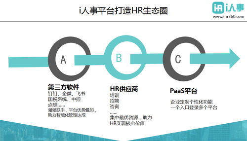 人力资源管理软件有哪些?作为一体化HR SaaS软件代表,i人事一直秉承开放友好的态度,积极和第三方合作,实现阿里云、腾讯云、京东云、华为云、亚马逊云等云平台赋能,与头部OA、CRM、ERP等系统,如钉钉、企微、飞书、国税、业务系统等平台对接,也可与自建应用对接,1个平台汇总全部数据,助力企业将人才数据接入业务管理场景,做到数据全部打通,消除人力资源管理数据隔阂,让人力资源管理有数据依据支持,只需1个i人事,实现整体化数字化管理生态。