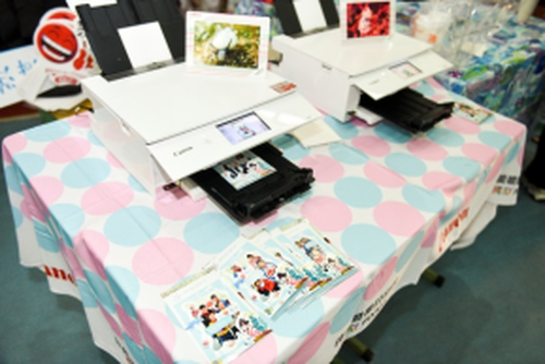 左图:佳能TS8380正在输出学生们的笑脸照 右图:工作人员正在帮学生们在大笑墙前面合影