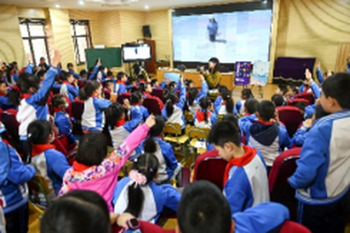 左图:由佳能TS8380输出的珊瑚图作为奖品送给回,为了增加讲座的趣味性,加入了互动环节:海洋生物“你画我猜”、有奖竞猜以及生态瓶的制作。学生们都踊跃参与。答问题的学生们