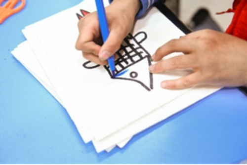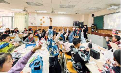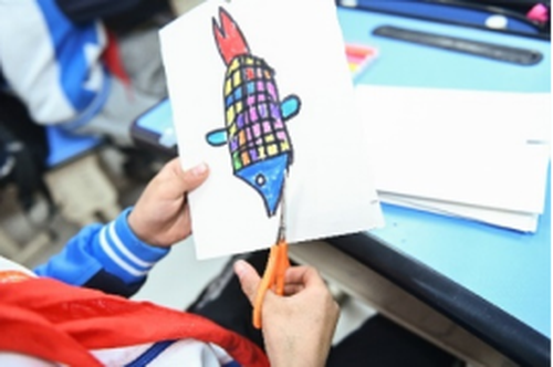 讲座之后就是学生们最爱的动手环节:手工制作课!课堂上学生们可以体验佳能 Creative Park1趣印乐园带来的海洋折纸。佳能趣印乐园里有许多海洋生物的素材,学生们最喜欢的还是这两条可爱的小金鱼,小金鱼折法不复杂,孩子们一学就会,玩的不亦乐乎。